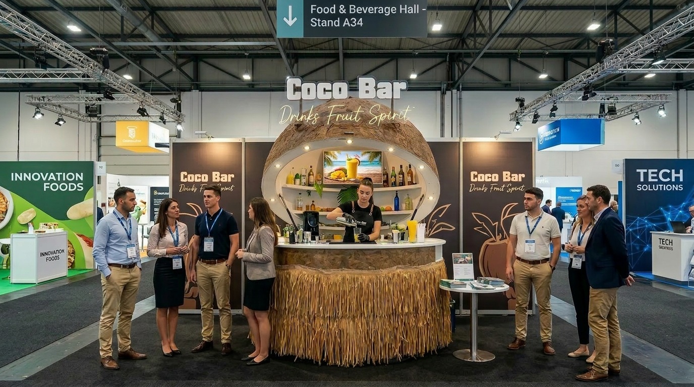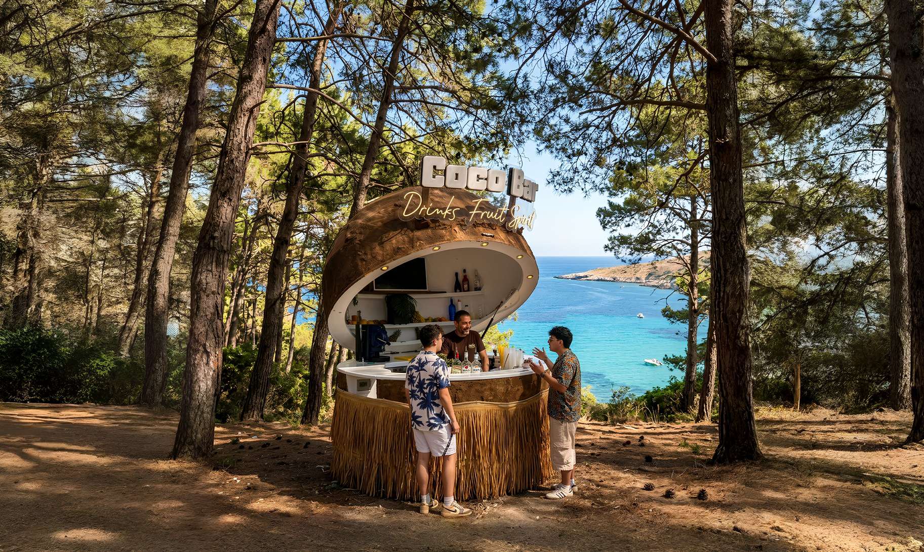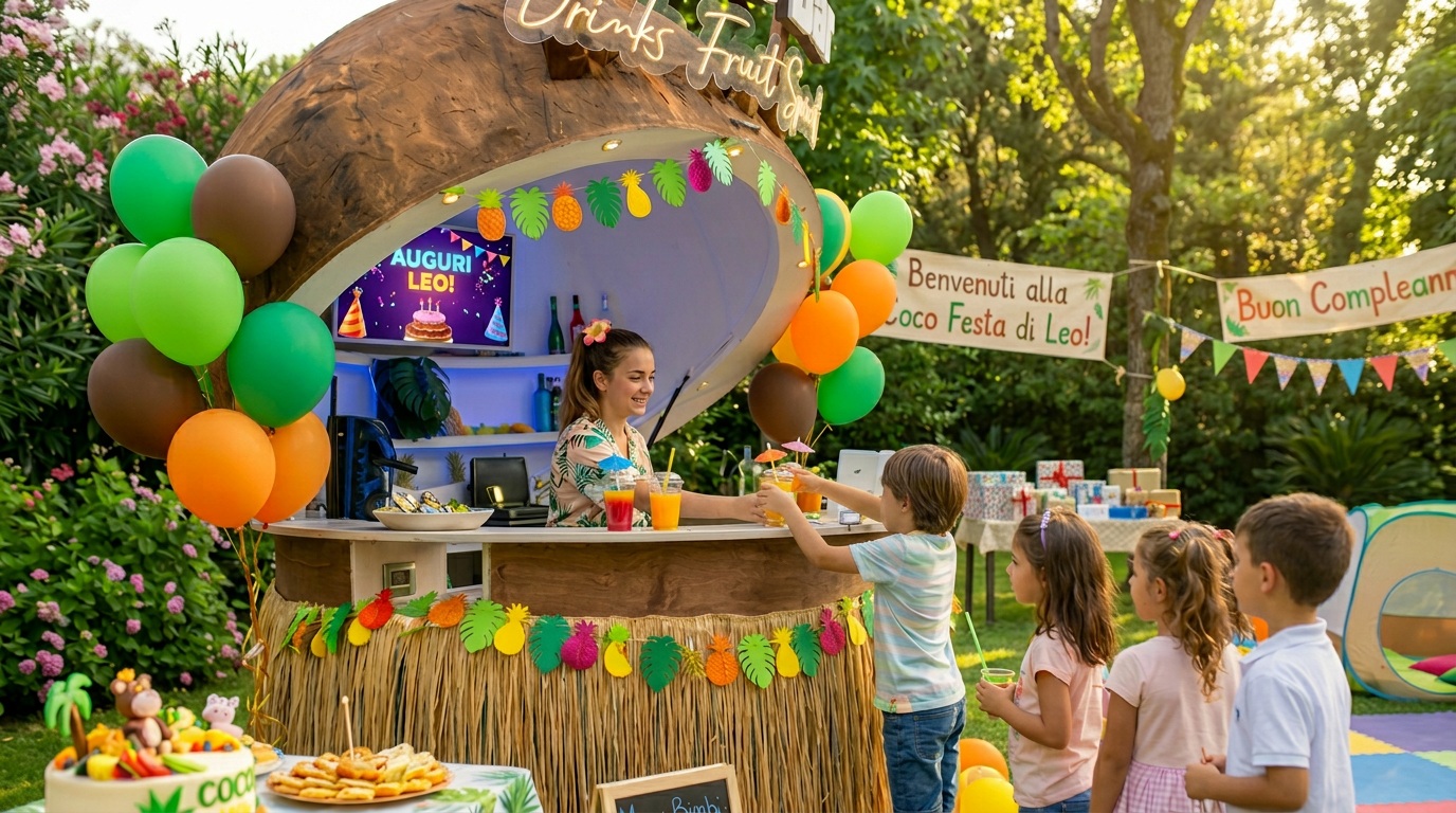 Un bar mobile a forma di cocco gigante che porta un'atmosfera unica con cocktail tropicali, frullati freschi e aperitivi ovunque ci sia un'occasione.