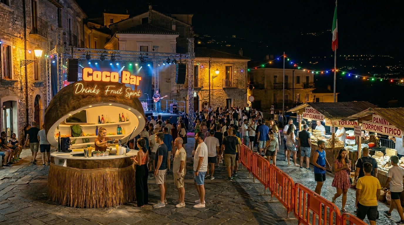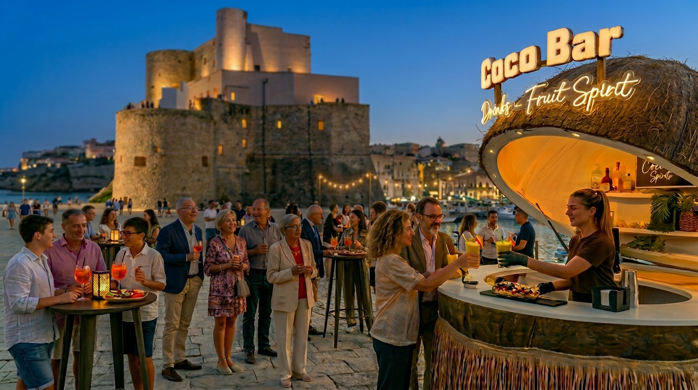 Siamo negli eventi pubblici più importanti della Campania e d'Italia, dai lungomari alle piazze, dai concerti ai raduni. Il CocoBar è pensato per stare in mezzo alla gente: porta attrazione, anima gli spazi aperti.