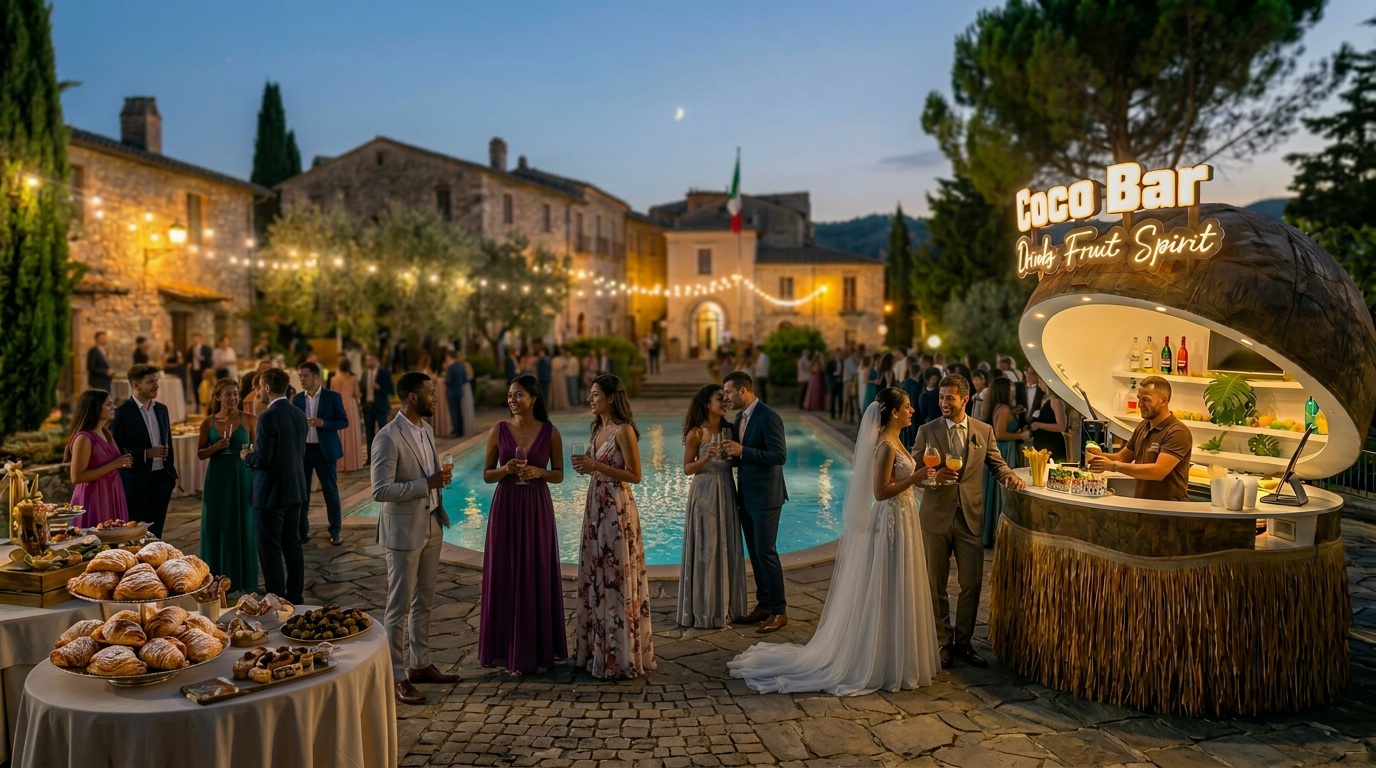 Il CocoBar si adatta a qualsiasi tipo di evento privato, piccolo o grande. Che si tratti di un matrimonio con cento ospiti o di una festa in giardino con gli amici, costruiamo il servizio intorno a voi — menu, allestimento e atmosfera su misura.